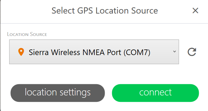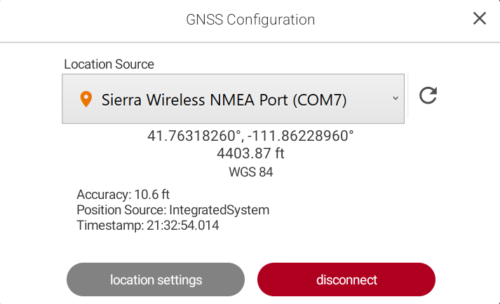- In Location Source, select the external GPS receiver from the drop-down list.