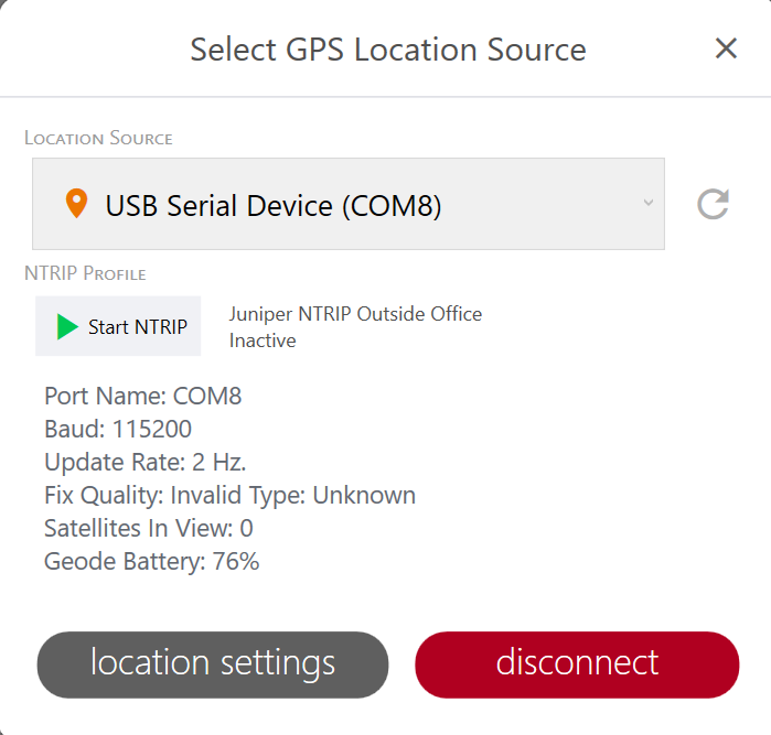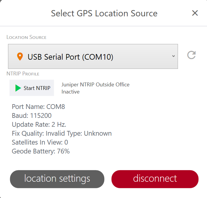 | NTRIP Settings Available only if connected to Geode GNSS receiver. |