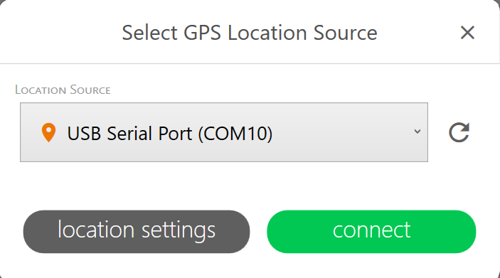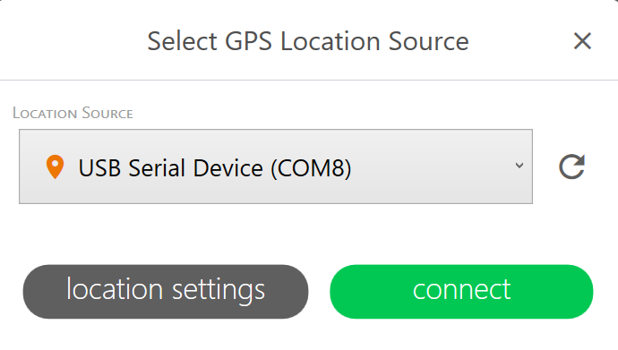 - In Location Source, select the USB serial device. If the receiver isn't listed, tap Refresh