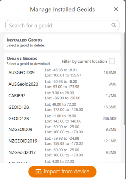 - To use a Geoid saved on your device, tap Import from device.
