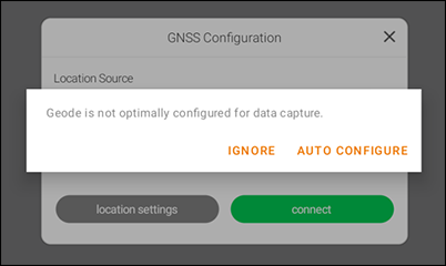 If you are using Uinta and connect to a Geode GNSS receiver, you may be prompted to auto configure the Geode.