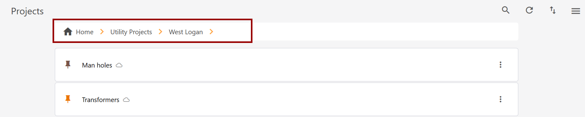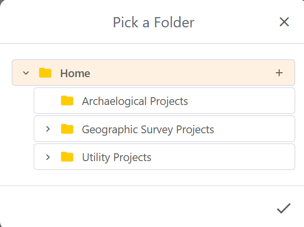 You can organize and manage your projects in folders on the Projects screen. The navigation bar at the top of the screen shows the folder structure. Quickly navigate to folder by tapping it. For example, tap Home to return to the main level.