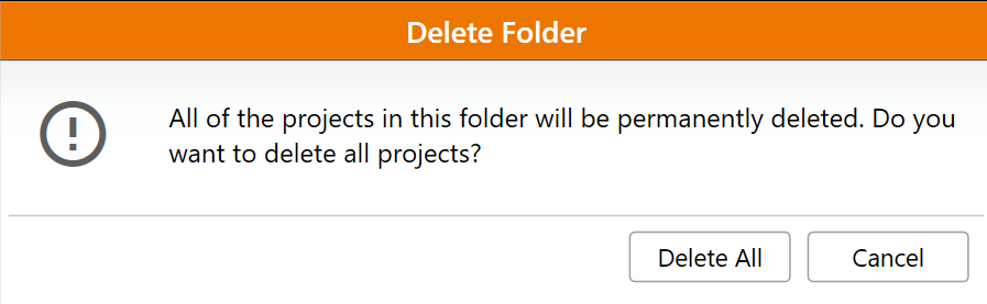 If the folder contains projects, Uinta warns that deleting the folder will delete all projects permanently.