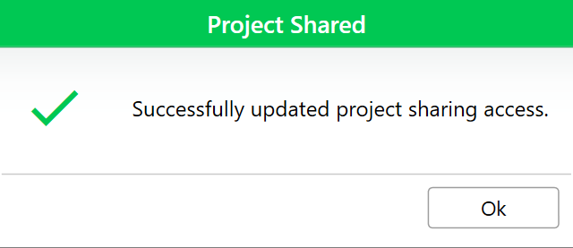 Uinta notifies you that the project has been successfully shared.