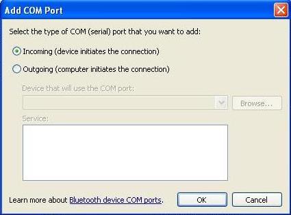 - Check the box next to "Allow serial cable or infrared connection..." or "Allow connections to one of the following:", select the new Bluetooth Incoming port number from the drop-down list, and then click OK. If the port number is not in the list, then the new Incoming Port has not completed being installed or is not setup properly.