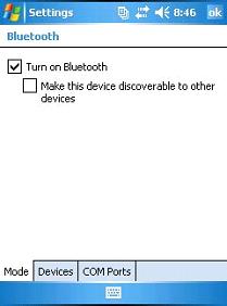 Note: If you would like the Field PC to be discoverable to other Bluetooth devices, tap on the "Make this device discoverable to other devices" checkbox.