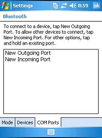 If you are connecting to a GPS receiver, printer, or some other peripheral device, tap on the New Outgoing Port option.