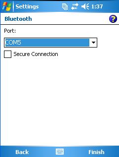 Select a COM port number from the Port: drop-down list, and then tap Finish.