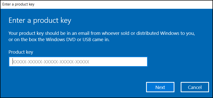 You will be asked to enter a new product key. If you have one, enter it. If you do not, use the KMS client setup key.