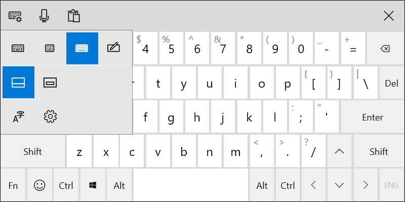 On the virtual keyboard, select the keyboard icon in the left corner.