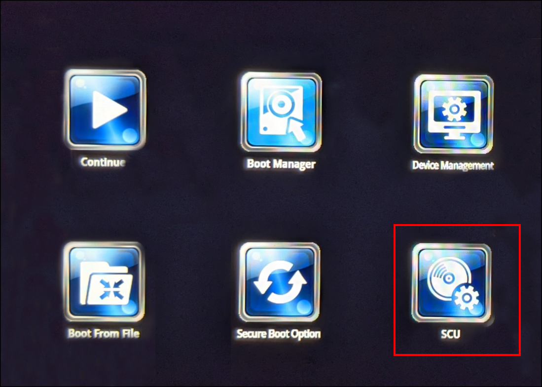 - When you are in the BIOS, select SCU.