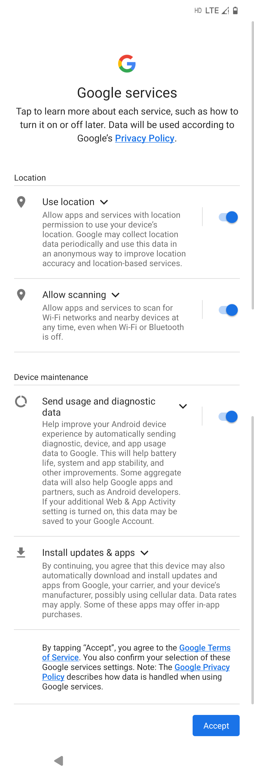 Note: You can use your phone without connecting to a Google account, however, you will miss some system updates that may include vital security updates.