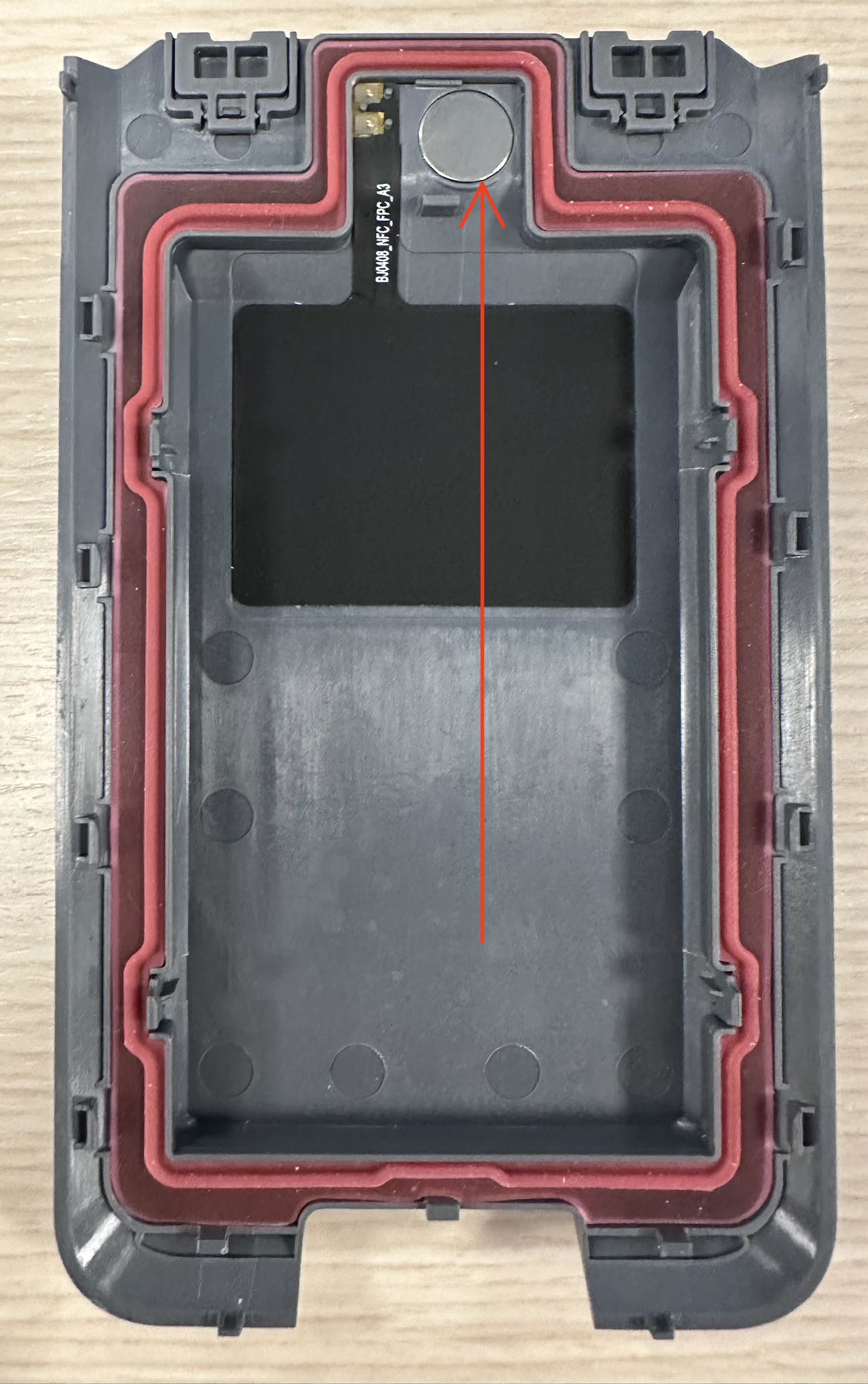 If the device experiences charging/power issues, check that your battery door magnet is present and the battery door is securely attached. See the picture below. If the magnet is missing, contact Juniper Technical Support.